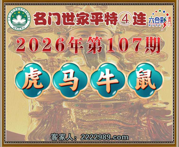 107期:『名门世家』 👚平特④连👚【虎马牛鼠】开:虎41,马49,牛06,鼠43