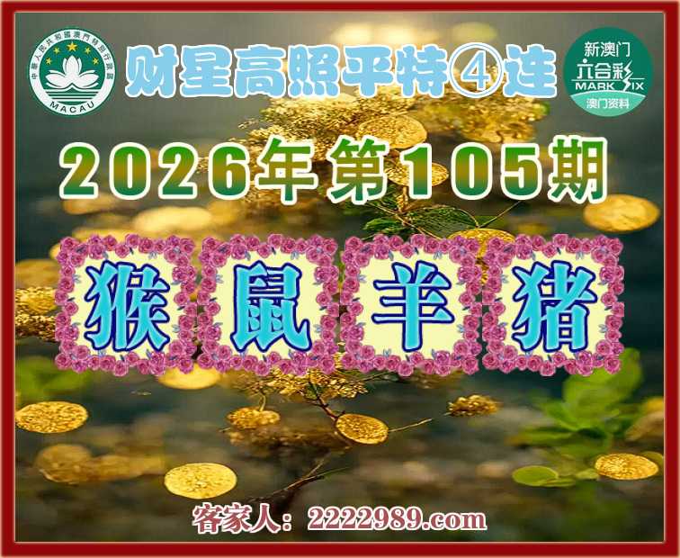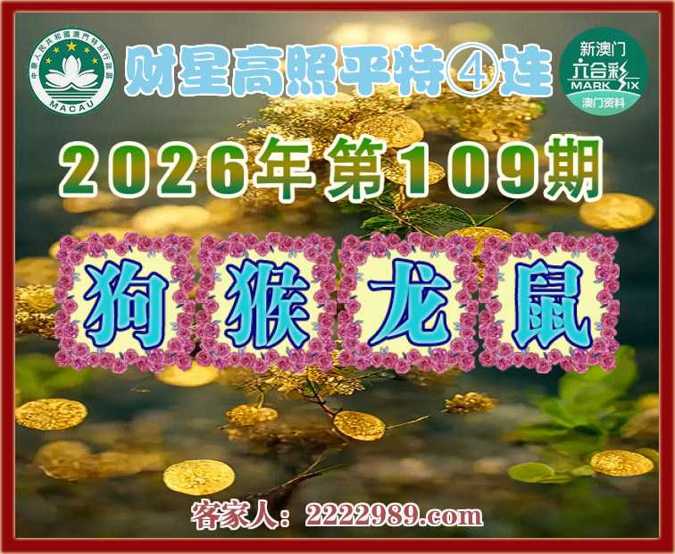 109期:《财星高照》 平特④连【狗猴龙鼠】开:00准