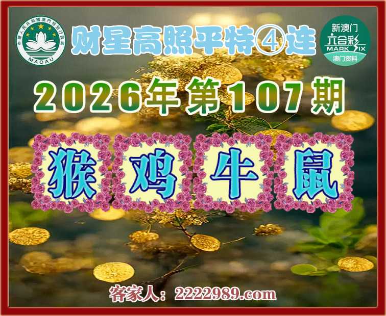107期:《财星高照》 平特④连【猴鸡牛鼠】开:猴35,鸡10,牛06,鼠43