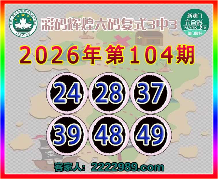 104期:〖彩码辉煌〗 六码复式3中3