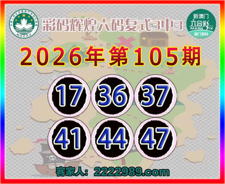 105期:〖彩码辉煌〗 六码复式3中3