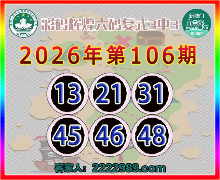 106期:〖彩码辉煌〗 六码复式3中3