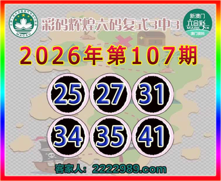 107期:〖彩码辉煌〗 六码复式3中3