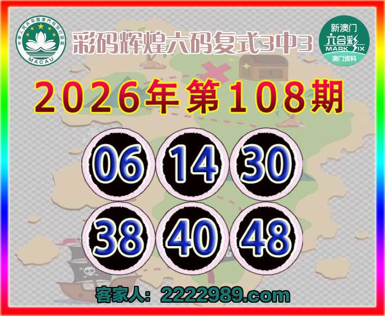 108期:〖彩码辉煌〗 六码复式3中3