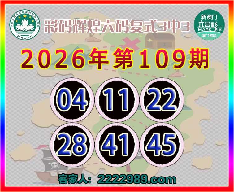 109期:〖彩码辉煌〗 六码复式3中3