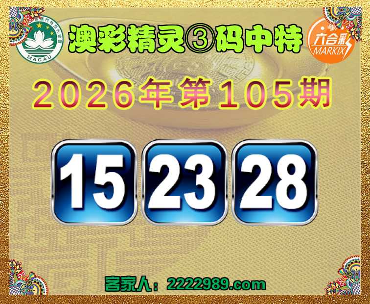 105期: 澳彩精灵 ③码中特【15.23.28】开:28