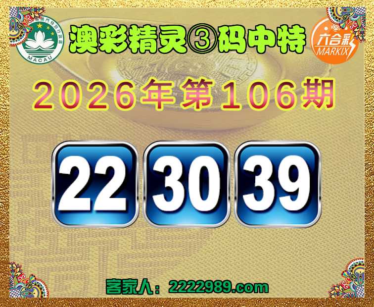 106期: 澳彩精灵 ③码中特22.30.39】开:22