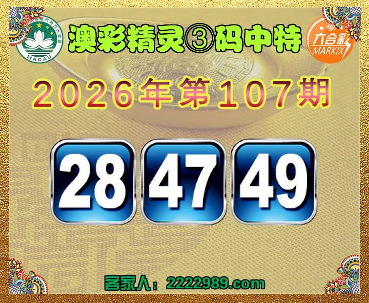 107期: 澳彩精灵 ③码中特【28.47.49】开:49