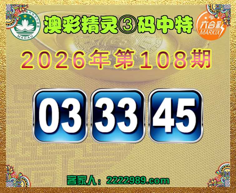 108期: 澳彩精灵 ③码中特【03.33.45】开:45