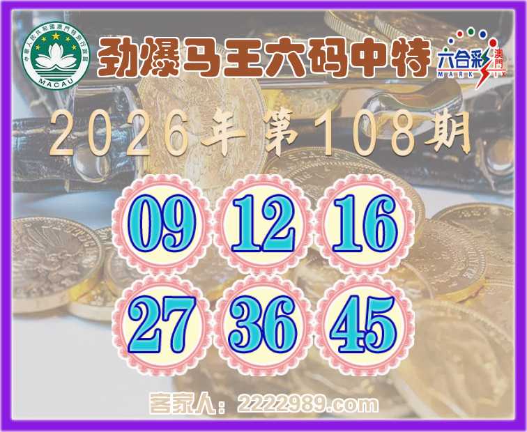 108期: 《劲爆马王》 六码中特【09.12.16.27.36.45】开:45